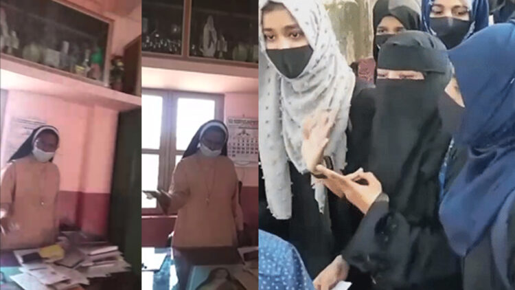സ്കൂളിൽ ,കുട്ടികൾ യൂണിഫോം നിബന്ധന പാലിക്കണമെന്നും , ഹിജാബ് ധരിച്ച് ക്ലാസ്സിൽ വരാൻ സമ്മതിക്കില്ലെന്നും പ്രധാനാദ്ധ്യാപിക പറയുന്ന വീഡിയോ പുറത്തു വന്നിരുന്നു . മദ്രസാ അദ്ധ്യാപകൻ ആയ രക്ഷിതാവ് തന്നെയാണ് അദ്ധ്യാപിക സംസാരിക്കുന്നത് മൊബൈലിൽ പകർത്തി സോഷ്യൽ മീഡിയ വഴി പ്രചരിപ്പിച്ചത്. തുടർന്ന് സ്കൂൾ ഫേസ് ബുക്ക് പേജിൽ ഇസ്ലാമിസ്റ്റുകൾ സംഘടിതമായെത്തി സൈബർ ആക്രമണം നടത്തിയിരുന്നു . കന്യാ സ്ത്രീകൾ ധരിക്കുന്ന വസ്ത്രം ചൂണ്ടിക്കാട്ടിയായിരുന്നു അദ്ധ്യാപികയ്ക്ക് നേരെ ഇസ്ലാമിസ്റ്റുകളുടെ സൈബർ അധിക്ഷേപം . കന്യാസ്ത്രീകൾക്ക് തല മൂടുന്ന വിധത്തിൽ വസ്ത്രം ധരിക്കാമെങ്കിൽ ഹിജാബും ആവാം എന്ന വാദവും ചിലർ ഉന്നയിച്ചു