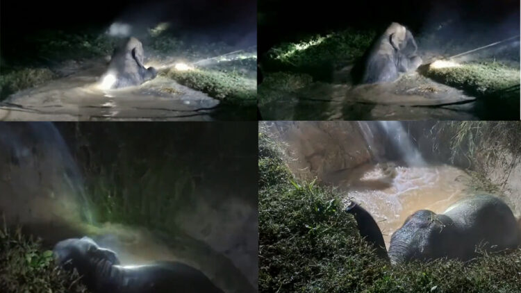 സമയോചിതമായ ഇടപെടൽ – ആനയെ കുഴിയിൽ നിന്ന് കരകയറ്റുന്നു