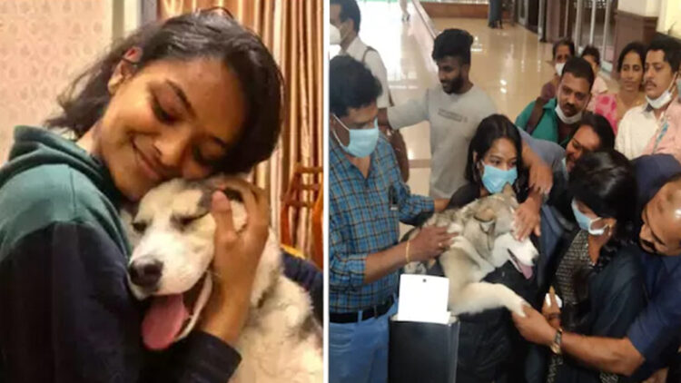 അരുമയെ നെഞ്ചോട് ചേർത്ത് ആര്യ; ഹസ്‌കിയുമായി കേരളത്തിലെത്തി