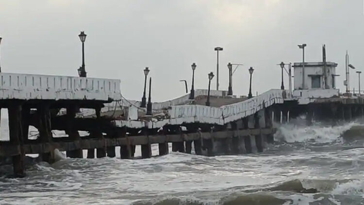 പുതുച്ചേരി റോക്ക് ബീച്ചിലെ കടൽപ്പാലം തകർന്നു; അപകടം ഉയർന്ന തിരമാലകൾ അടിച്ച്; തകർന്നത് ‘ലൈഫ് ഓഫ് പൈ’ ഉൾപ്പെടെ ചിത്രീകരിച്ച പാലം