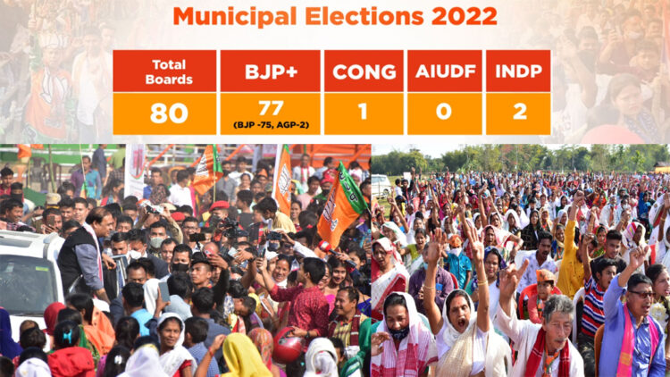 അസം മുനിസിപ്പൽ തിരഞ്ഞെടുപ്പ്; 77 നഗരസഭകളിൽ ഭരണം പിടിച്ച് ബിജെപി; തകർന്നടിഞ്ഞ് കോൺഗ്രസ്; ഭരണം കിട്ടിയത് ഒരിടത്ത്