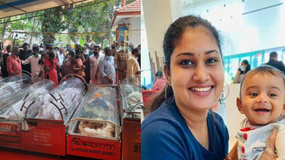 വർക്കലയിലെ തീപിടുത്തം: അഭിരാമിയേയും കുഞ്ഞിനേയും ഒന്നിച്ച് അടക്കി, പ്രതാപനും കുടുംബത്തിനും ജന്മനാടിന്റെ യാത്രാമൊഴി