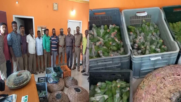 ട്രിച്ചിയിൽ അനധികൃത പക്ഷിക്കച്ചവടം വ്യാപകം; വിൽക്കാൻ കൊണ്ടുവന്ന 600 ലധികം തത്തകളെ പിടിച്ചെടുത്ത് കാട്ടിലേക്ക് വിട്ട് വനംവകുപ്പ്