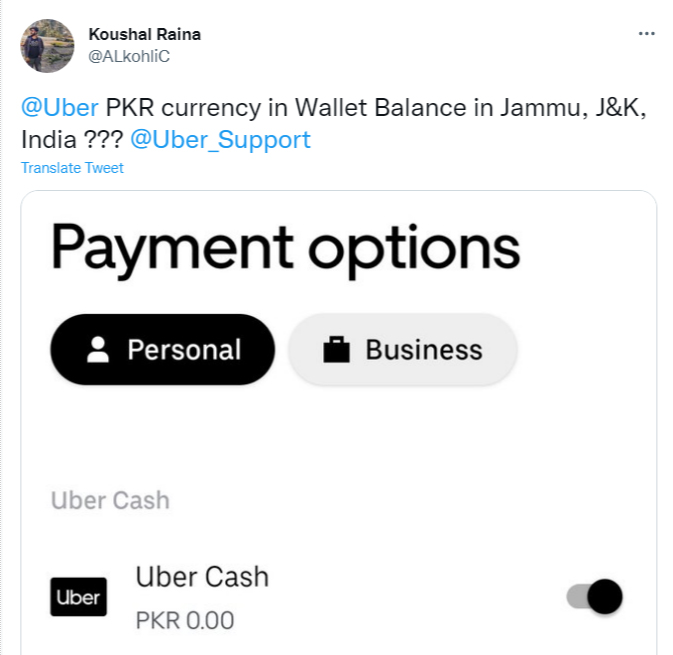 ഇന്ത്യൻ അതിർത്തിക്കുള്ളിലുള്ള പ്രദേശത്ത് യാത്ര ചെയ്യുന്നതിനാണ് ഊബർ പാകിസ്താൻ കറൻസിയും സ്വീകരിക്കുന്നുവെന്ന ആരോപണം ഉയരുന്നത്. ഊബർ ആപ്പിനുള്ളിൽ പേയ്മെന്റ് നടത്തുന്ന ഓപ്ഷൻ കാണിക്കുന്ന ഭാഗത്താണ് പാക് കറൻസിയും അനുവദിക്കുമെന്ന് കാണിച്ചിരിക്കുന്നത്. ഇത് വ്യക്തമാക്കുന്ന സ്ക്രീൻഷോട്ടും കൗശൽ റെയ്ന എന്നയാൾ ട്വിറ്ററിലൂടെ പങ്കുവെച്ചു.