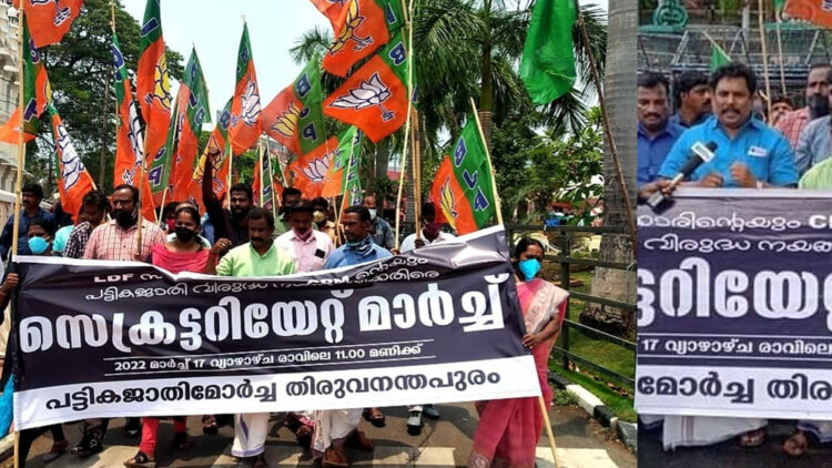 അട്ടിമറിക്കുകയാണെന്ന് ബിജെപി സംസ്ഥാന ജനറൽ സെക്രട്ടറി അഡ്വ പി സുധീർ. പട്ടികജാതി സംവരണ അട്ടിമറിക്കെതിരെയും, പട്ടികജാതി പീഡനങ്ങൾ അവസാനിപ്പിക്കണമെന്നാവശ്യപ്പെട്ടും, പട്ടികജാതി മോർച്ച നടത്തിയ സെക്രട്ടറിയേറ്റ് മാർച്ച് ഉദ്ഘാടനം ചെയ്തു സംസാരിക്കുകയായിരുന്നു അദ്ദേഹം.