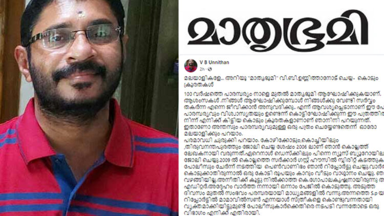 മലയാളികളേ… അറിയൂ ‘മാതൃഭൂമി’ വി.ബി.ഉണ്ണിത്താനോട് ചെയ്ത- കൊടും ക്രൂരതകൾ എന്ന തലക്കെട്ടോടെയാണ് പോസ്റ്റ്…