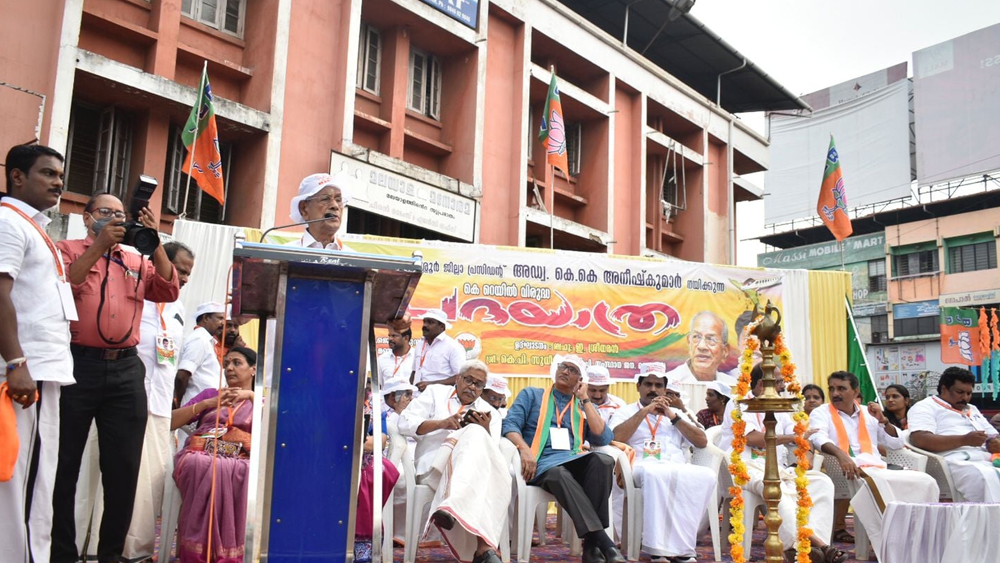 കെ-റെയിൽ വിരുദ്ധ പദയാത്രയിൽ ബിജെപി ജില്ലാ വൈസ് പ്രസിഡന്റ് ദയനന്ദൻ മാമ്പുള്ളി അധ്യക്ഷത വഹിച്ചു. ബിജെപി സംസ്ഥാന ജനറൽ പി സുധീർ, മേഖല സെക്രട്ടറി ഉണ്ണികൃഷ്ണൻ, ഗണേഷ് ജി മാസ്റ്റർ, സംസ്ഥാന വൈസ് പ്രസിഡന്റുമാരായ ബി ഗോപാലകൃഷ്ണൻ,സധാനന്ദൻ മാസ്റ്റർ,ബിജെപി സംസ്ഥാന വക്താക്കളായ നാരായണൻ നമ്പുരി,പി സിന്ധു മോൾ,എന്നിവർ പങ്കെടുത്തു.