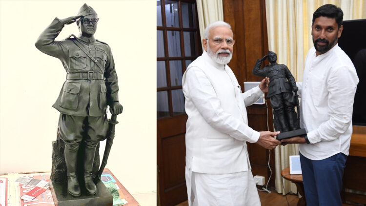 Got the opportunity to present 2ft monolithic stone model of Subhas Chandra Bose to @narendramodi Ji thanks our dynamic MP @mepratap sir 🙏🏾🙏🏾 pic.twitter.com/Cz7sPh19XZ