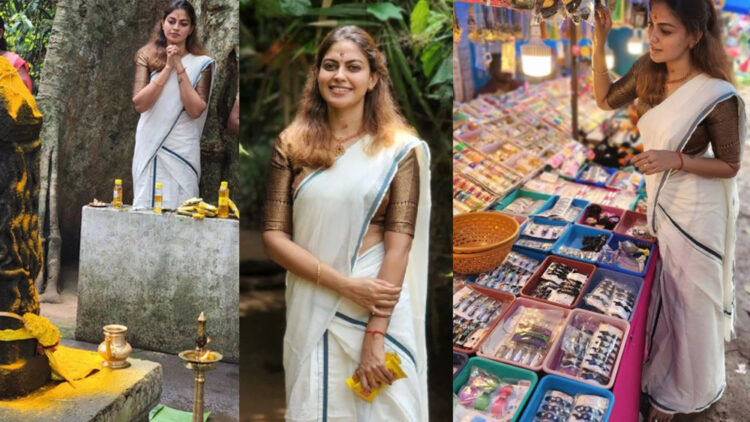 നാഗരാജക്ഷേത്രത്തിൽ മഞ്ഞൾപ്പൊടി സമർപ്പിക്കുന്നതും പൂജയിൽ പങ്കെടുക്കുന്നതും ഉത്സവപറമ്പിൽ നിൽക്കുന്നതുമായ ചിത്രങ്ങളാണ് താരം പങ്കു വെച്ചിരിക്കുന്നത്.