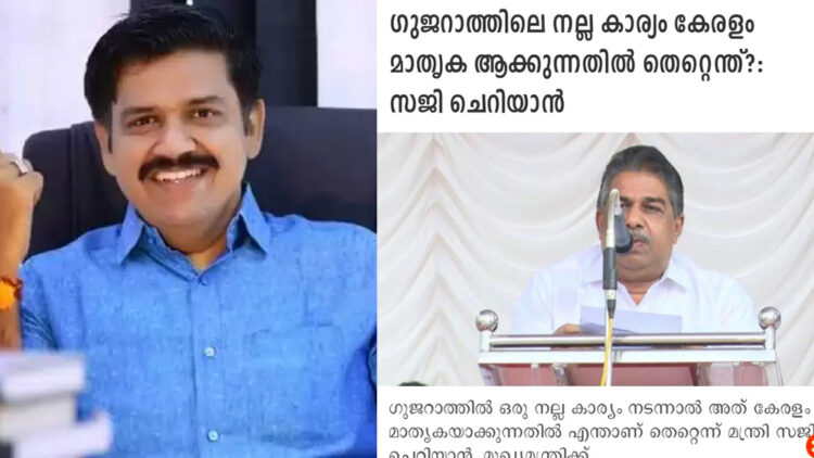 ഈ സഖാക്കൾക്കിതെന്ത് പറ്റി ? ചീഫ് സെക്രട്ടറി മുതൽ മന്ത്രി സജി ചെറിയാൻ വരെയുള്ളവർ ഗുജറാത്ത് മോഡലിനെ പുകഴ്‌ത്തുന്നു . …