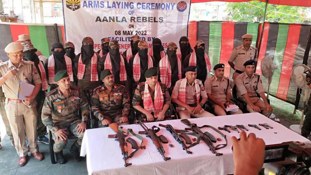 എകെ സീരീസിലുള്ള നാല് റൈഫിളുകൾ, നാല് പിസ്റ്റലുകൾ, ഒരു റിവോൾവർ, തിരകൾ എന്നിവയാണ് ഭീകരർ ഉപേക്ഷിച്ചത്. സംസ്ഥാനത്ത് സമാധാനാന്തരീക്ഷം കൈവന്നിരിക്കുകയാണെന്നും ഇത് തുടരുമെന്നും സംഭവത്തിൽ പ്രതികരിച്ച അസം മുഖ്യമന്ത്രി ഹിമന്ത ബിശ്വ ശർമ പറഞ്ഞു. നിലവിൽ സർക്കാരുമായുള്ള സമാധാന ചർച്ചകളിലാണ് എ.എ.എൻ.എൽ.എ.