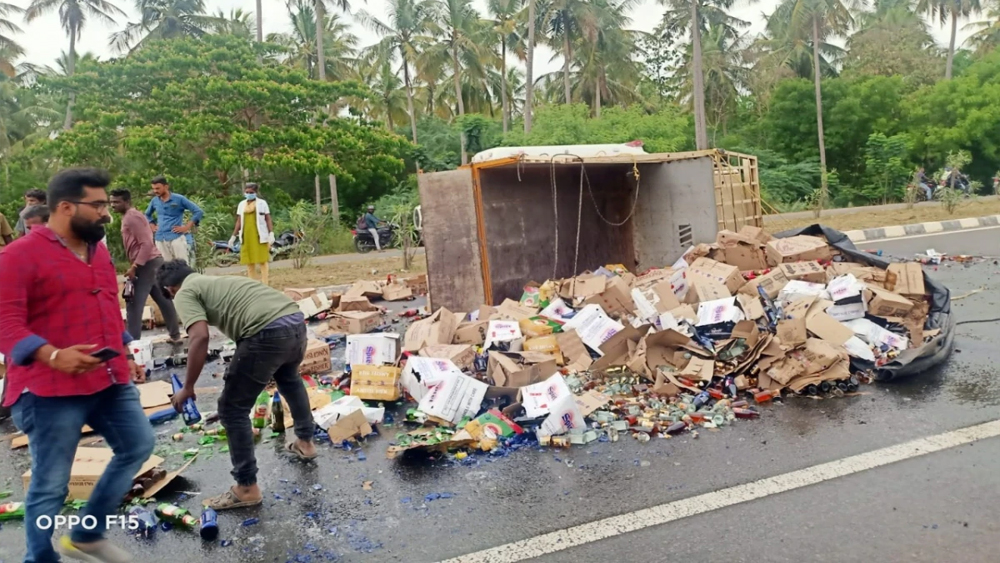 റോഡിൽ ലോറി മറിഞ്ഞതിനാലും മദ്യകുപ്പികൾ നിരന്ന് കിടന്നിരുന്നതിനാലും ഗതാഗതം തടസ്സപ്പെട്ടിരുന്നു. കഴിഞ്ഞ ഏപ്രിൽ 20ന് സമാനരീതിയിൽ അപകടം നടന്നതായി റിപ്പോർട്ട് ചെയ്തിട്ടുണ്ട്. മധ്യപ്രദേശിലെ ബർവാനിയിലുള്ള പാലത്തിൽ മദ്യകുപ്പികളുമായി എത്തിയ വാഹനം കാറുമായി ഇടിച്ചു. പരിക്കേറ്റവരെ ആശുപത്രിയിലെത്തിക്കുന്നതിനോടൊപ്പം ചിതറിക്കിടക്കുന്ന ബിയർ ബോട്ടിലുകൾ കൈവശപ്പെടുത്താനുള്ള തത്രപാടിലായിരുന്നു ജനങ്ങൾ. പിന്നീട് പോലീസ് സ്ഥലത്തെത്തിയപ്പോൾ ഉടഞ്ഞ കുപ്പികൾ അല്ലാതെ ഒന്നും തന്നെ അവശേഷിച്ചിരുന്നില്ല.