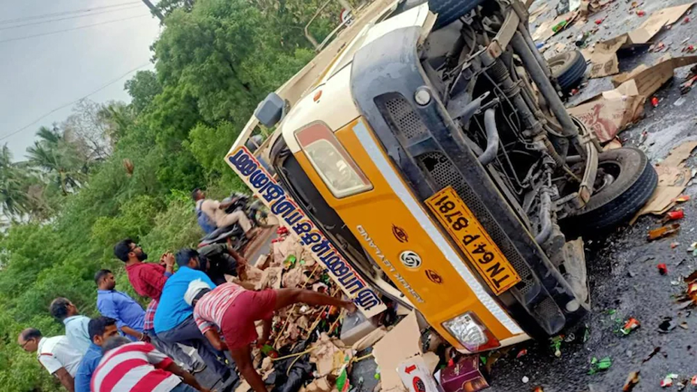 ചെന്നൈ: പത്ത് ലക്ഷം രൂപയുടെ മദ്യകുപ്പികളുമായി വന്ന ലോറി തലകീഴായി മറിഞ്ഞു. തമിഴ്നാട്ടിലെ മധുരൈയിൽ വാരാഗനൂർ പ്രദേശത്താണ് സംഭവമുണ്ടായത്. കേരളത്തിൽ നിന്നും പോയ ലോഡാണ് അപകടത്തിൽപ്പെട്ടതെന്നാണ് വിവരം.