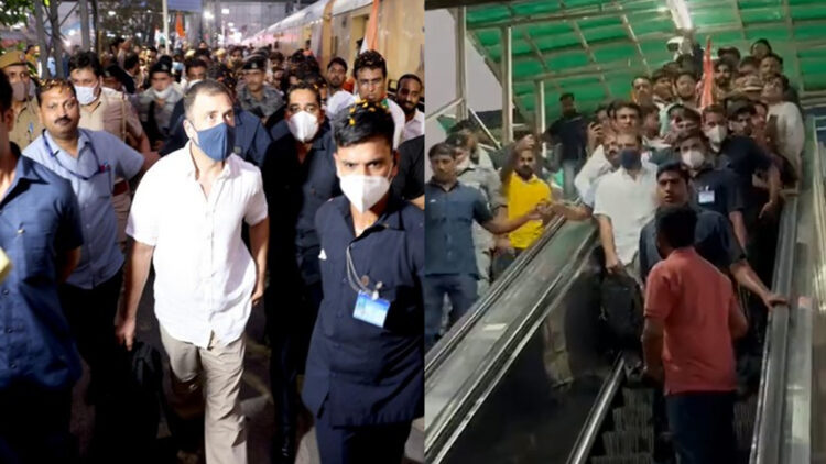 സ്റ്റേഷനിലെ എസ്‌കലേറ്ററിൽ പോലും രാഹുലിനൊപ്പം മുദ്രാവാക്യം വിളിച്ച്