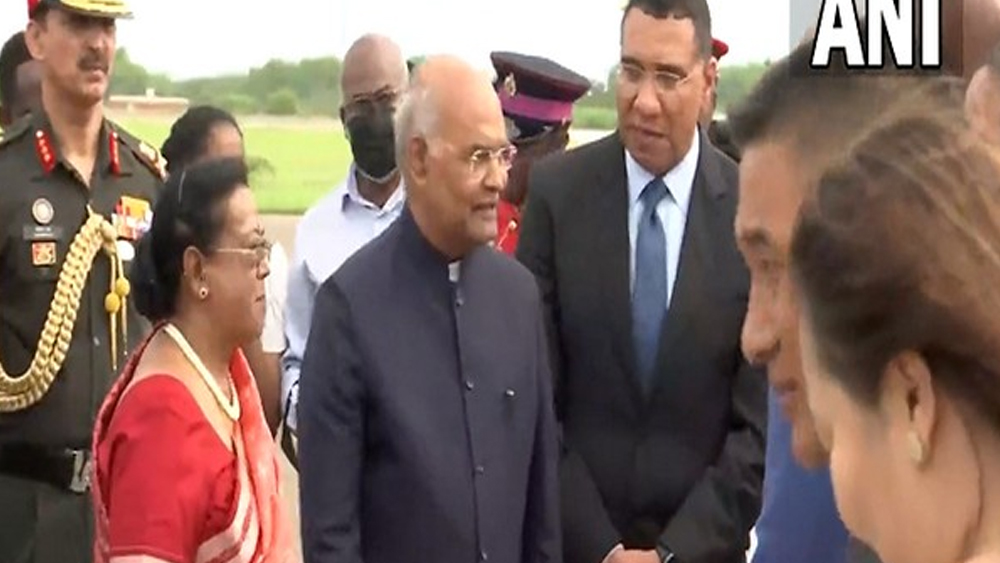 ഭാര്യ സവിത കോവിന്ദ്, മകൾ സ്വാതി കോവിന്ദ്, കേന്ദ്രമന്ത്രി പങ്കജ് ചൗധരി, ലോക്‌സഭാ എംപി രമാദേവി, സതീഷ് കുമാർ ഗൗതം തുടങ്ങിയവരാണ് രാഷ്‌ട്രപതിയെ അനുഗമിച്ചത്. രാഷ്‌ട്രപതിയ്‌ക്ക് ആചാരപരമായ സ്വാഗതവും ഗാർഡ്ഓഫ് ഓണറും നൽകിയാണ് ജമൈക്കക്കാർ സ്വീകരിച്ചത്. ജമൈക്കയിലെ ചീഫ് ഡിഫൻസ് സ്റ്റാഫിന്റെ അകമ്പടിയോടെയായിരുന്നു വിമാനത്താവളത്തിലെ സ്വീകരണം.