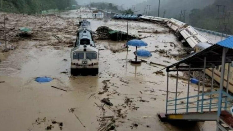 ശക്തമായ മണ്ണിടിച്ചിലിലാണ് റെയിൽവേ സ്റ്റേഷനിൽ നാശനഷ്ടമുണ്ടായത്. മണ്ണിടിച്ചിലിന്റെ ശക്തിയിൽ ഇവിടെ നിർത്തിയിട്ടിരുന്ന പാസഞ്ചർ തീവണ്ടി ട്രാക്കിൽ നിന്ന് പുറത്തേക്ക് മറിഞ്ഞുവീണു. ഇതിന്റെ വീഡിയോദൃശ്യങ്ങൾ സമൂഹമാദ്ധ്യമങ്ങളിലൂടെ പുറത്തുവന്നിട്ടുണ്ട്.