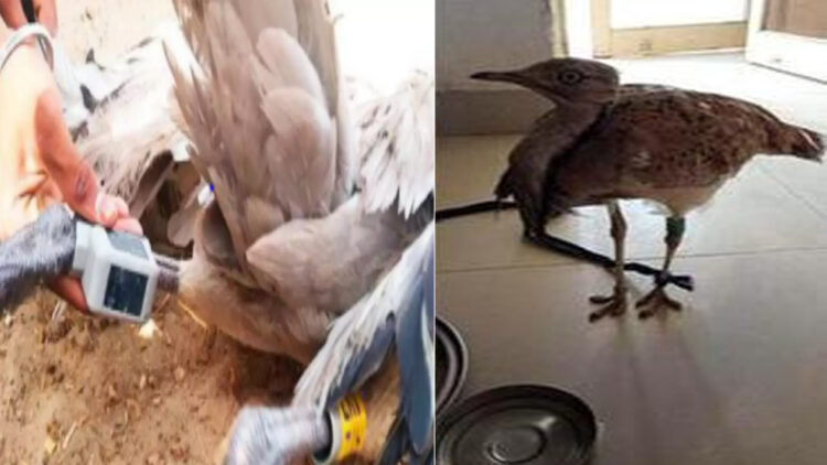 കാലിൽ വളയങ്ങൾ; ഇവയിലൊന്നിൽ നമ്പറുകൾ; രഹസ്യ കോഡുമായി അതിർത്തികടന്നെത്തിയ ഏഷ്യാറ്റിക് ഹൗബാരയെ പിടികൂടി