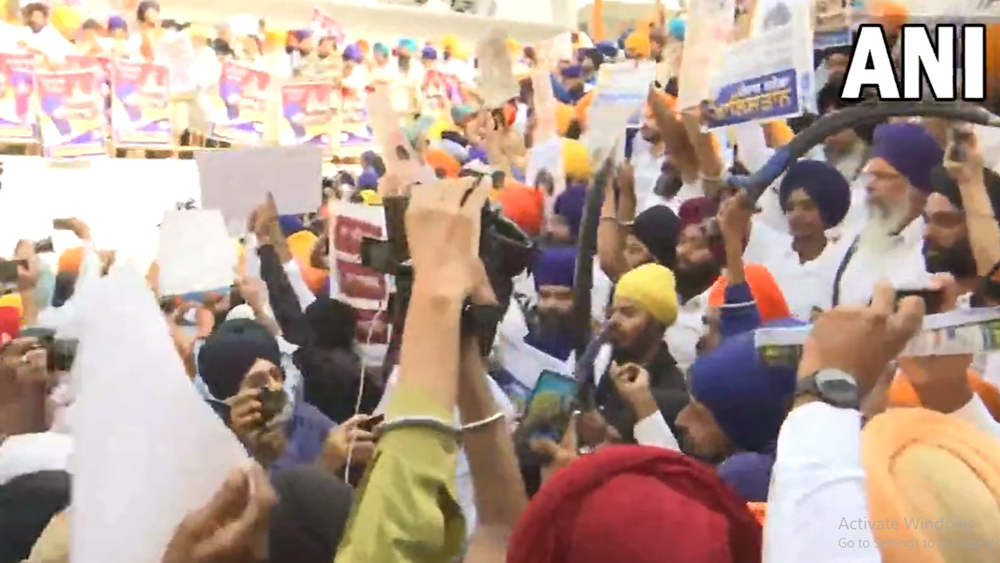 രാവിലെയോടെയാണ് ക്ഷേത്ര കവാടത്തിന് മുൻപിൽ ഖാലിസ്ഥാൻ ഭീകരർ തടിച്ച് കൂടിയത്. ജർണയിൽ ഭിന്ദ്രൻവാലെയുടെ അനുയായികൾ ആയുധങ്ങളുമായി സംഘടിച്ചെത്തിയത്. വാൾ ഉൾപ്പെടെയുള്ള മാരകായുധങ്ങൾ കയ്യിലേന്തിയ ഇവർ ഖാലിസ്ഥാൻ അനുകൂല മുദ്രാവാക്യവും മുഴക്കിയിരുന്നു. ഖാലിസ്ഥാൻ അനുകൂല മുദ്രാവാക്യങ്ങൾ എഴുതിയ പോസ്റ്ററുകളും കയ്യിലേന്തിയാണ് ഇവരുടെ പ്രതിഷേധം.