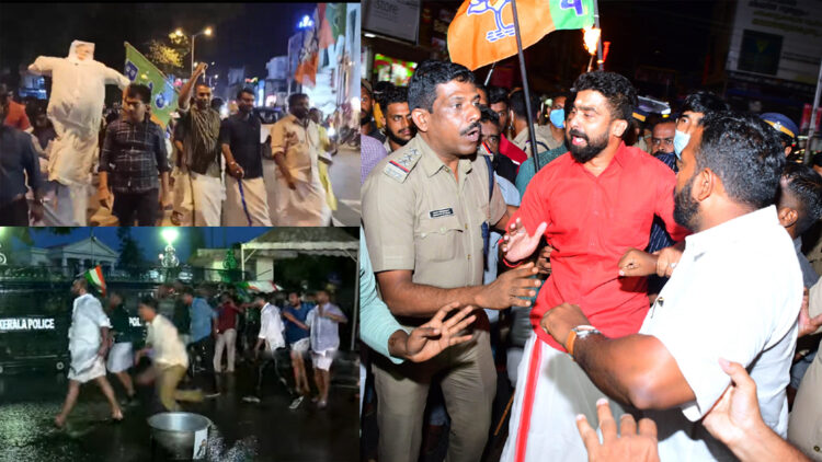 യുവമോർച്ച പാലക്കാട് ജില്ലാ കമ്മിറ്റിയുടെ നേതൃത്വത്തിലും പ്രതിഷേധ മാർച്ച് സംഘടിപ്പിച്ചു. യുമോർച്ച ജില്ലാ പ്രസിഡന്റ് പ്രശാന്ത് ശിവന്റെ നേതൃത്വത്തിൽ നടന്ന പ്രതിഷേധത്തിൽ പോലീസും പ്രവർത്തകരും തമ്മിൽ ഉന്തും തള്ളും ഉണ്ടായി.