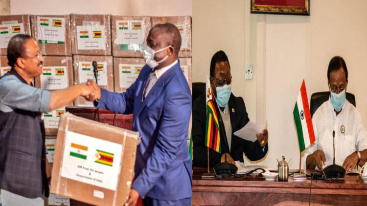 സിംബാബ് വെയ്‌ക്ക് ഇന്ത്യയുടെ സഹായഹസ്തം; മരുന്നുകളടക്കം കൈമാറി കേന്ദ്രമന്ത്രി വി.മുരളീധരൻ
