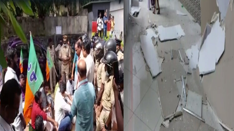 രാവിലെയോടെയാണ് ബിജെപി- യുവമോർച്ച പ്രവർത്തകർ ആശുപത്രിയിലേക്ക് പ്രതിഷേധവുമായി എത്തിയത്. ആശുപത്രിമുറ്റത്തുവെച്ച് ഇവരെ പോലീസ് തടഞ്ഞു. തുടർന്ന് പോലീസും പ്രവർത്തകരും തമ്മിൽ ഉന്തും തള്ളുമുണ്ടായി. പിന്നീട് ആശുപത്രിക്ക് മുൻപിൽ പ്രവർത്തകർ കുത്തിയിരുന്ന് പ്രതിഷേധിച്ചു.