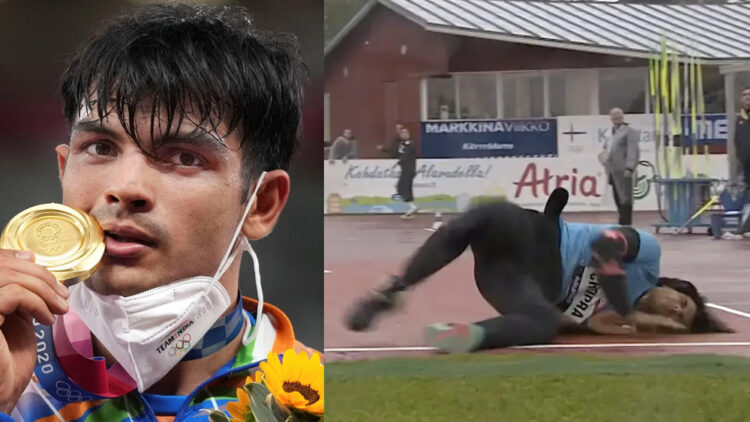 മൂന്ന് പരിശ്രമങ്ങളിൽ ആദ്യത്തെ എറിഞ്ഞുവീഴ്ത്തൽ തന്നെ നീരജിന് സ്വർണം നേടിത്തരാൻ പാകമുള്ളതായിരുന്നു. നീരജിന്റെ ജാവലിൻ 86.69 മീറ്റർ ദൂരം താണ്ടിയാണ് സ്വർണം സ്വന്തമാക്കിയത്. എന്നാൽ പിന്നീടുള്ള രണ്ട് ശ്രമങ്ങളും ഫൗളായിരുന്നു. ഇതിൽ മൂന്നാമത്തെ പരിശ്രമത്തിലാണ് ജാവലിൻ എറിഞ്ഞതിന് ശേഷം നീരജ് നിലത്തുവീണത്. എന്നാൽ വീഴ്ചയ്ക്ക് അപ്പുറം തന്നെ കാത്തിരുന്നത് സ്വർണ മെഡൽ ആയിരുന്നുവെന്ന യാഥാർത്ഥ്യം തിരിച്ചറിഞ്ഞത് പിന്നീടായിരുന്നു.