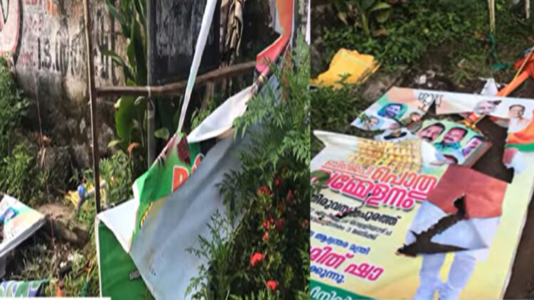 ബൈക്കിൽ എത്തിയ മൂന്നംഗ സംഘമാണ് കൊടിതോരണങ്ങളും ഫ്ളക്സ് ബോർഡുകളും നശിപ്പിച്ചത് എന്നാണ് ദൃശ്യങ്ങളിൽ നിന്നും വ്യക്തമാകുന്നത്. പ്രതികൾക്കായി സിസിടിവി ദൃശ്യങ്ങൾ വിശദമായി പരിശോധിച്ചുവരികയാണ്. കണ്ടല സഹകരണ ബാങ്കിലെ ക്രമക്കേടുമായി ബന്ധപ്പെട്ട് കഴിഞ്ഞ ദിവസങ്ങളിൽ ബിജെപി ശക്തമായ പ്രതിഷേധവുമായി രംഗത്തുവന്നിരുന്നു. ഇതും ആക്രമണത്തിന് കാരണമായിട്ടുണ്ടെന്ന് ബിജെപി പ്രവർത്തകർ പറഞ്ഞു.