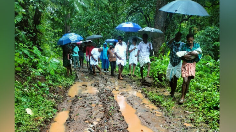 പാലക്കാട്: ആരോഗ്യമേഖലയിൽ നമ്പർ വൺ എന്ന് അവകാശപ്പെടുന്ന കേരളത്തിൽ നവജാത ശിശുവിന്റെ മൃതദേഹവുമായി പിതാവ് നടന്നത് കിലോ മീറ്ററുകൾ. മുരുഗള ഊരിലെ അയ്യപ്പനാണ് ഈ ദുരവസ്ഥയുണ്ടായത്. കോളനിയിലേക്ക് ഗതാഗതയോഗ്യമായ വഴിയില്ലാത്തതിനാൽ ആംബുലൻസ് എത്താതിരുന്നതോടെയാണ് കുഞ്ഞിന്റെ മൃതദേഹവുമായി അയ്യപ്പൻ കോളനിയിലേക്ക് നടന്നത്.