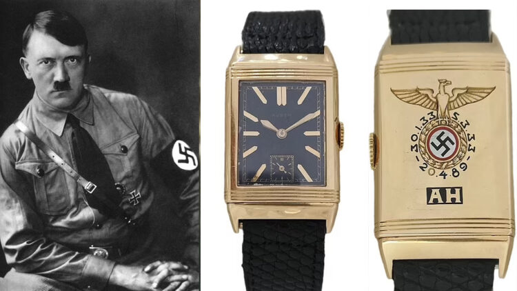 1945 മെയ് 4 ന് തെക്കൻ ജർമ്മനിയിലെ ബവേറിയയിലെ ഹിറ്റ്ലറുടെ പർവത സങ്കേതമായ ബെർഗോഫിൽ നിന്ന് ഒരു ഫ്രഞ്ച് സൈനികനാണ് ഇത് എടുത്തത്. ഇതിന് അഞ്ച് ദിവസം മുമ്പാണ് ഹിറ്റ്ലർ ആത്മഹത്യ ചെയ്തത്. അമേരിക്കയിലെ മേരിലാൻഡിലെ അലക്സാണ്ടർ ഹിസ്റ്റോറിക്കൽ ലേലത്തിൽ ഈ വാച്ചിന് 2 മുതൽ 4 മില്യൺ ഡോളർ വരെ ലഭിക്കുമെന്ന ഉറപ്പിലാണ് അധികൃതർ.