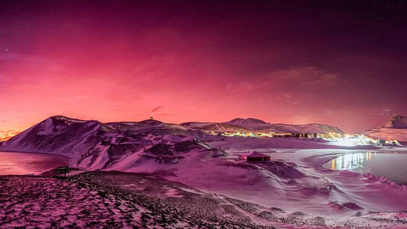 അതിമനോഹരമായി എഡിറ്റ് ചെയ്ത ഫോട്ടോഷോപ്പ് ചിത്രങ്ങളെ കവച്ചുവെക്കുന്ന പ്രകൃതി ദൃശ്യമാണ് ഇപ്പോൾ സോഷ്യൽമീഡിയയിൽ തരംഗമാകുന്നത്. കാഴ്ചക്കാരെ അത്ഭുതപ്പെടുത്തുന്ന ദൃശ്യങ്ങൾ അന്റാർട്ടിക്കയിൽ നിന്നുള്ളതാണ്. പതിവിന് വിപരീതമായി വ്യത്യസ്ത നിറങ്ങളാൽ വർണാഭമായ ആകാശമാണ് അന്റാർട്ടിക്കയിൽ നിന്നും പകർത്തിയ ദൃശ്യങ്ങളിൽ കാണാൻ സാധിക്കുക. ഓറഞ്ച്, പർപ്പിൾ, പിങ്ക് നിറങ്ങളാൽ സമന്വയിച്ച ആകാശത്തിന്റെ ചിത്രങ്ങൾ ഏതൊരാൾക്കും അവിശ്വസനീയമായി തോന്നാം..