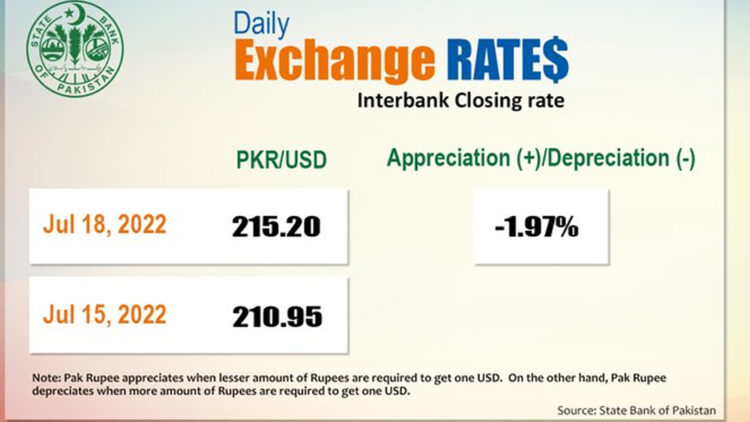 ഇസ്ലാമാബാദ്: വിനിമയ നിരക്കിൽ പാകിസ്താൻ കറൻസിയുടെ മൂല്യം തുടർച്ചയായി മൂക്കുകുത്തുന്നു. ഡോളറിനെ അപേക്ഷിച്ച് റെക്കോഡ് മൂല്യത്തകർച്ചയാണ് രേഖപ്പെടുത്തുന്നത്. പാകിസ്താൻ ഫോറെക്സ് അസോസിയേഷൻ പുറത്തുവിടുന്ന വിവരം അനുസരിച്ച് ഡോളറിന് 216 എന്നതാണ് ഇന്നത്തെ വിനിമയ നിരക്ക്.