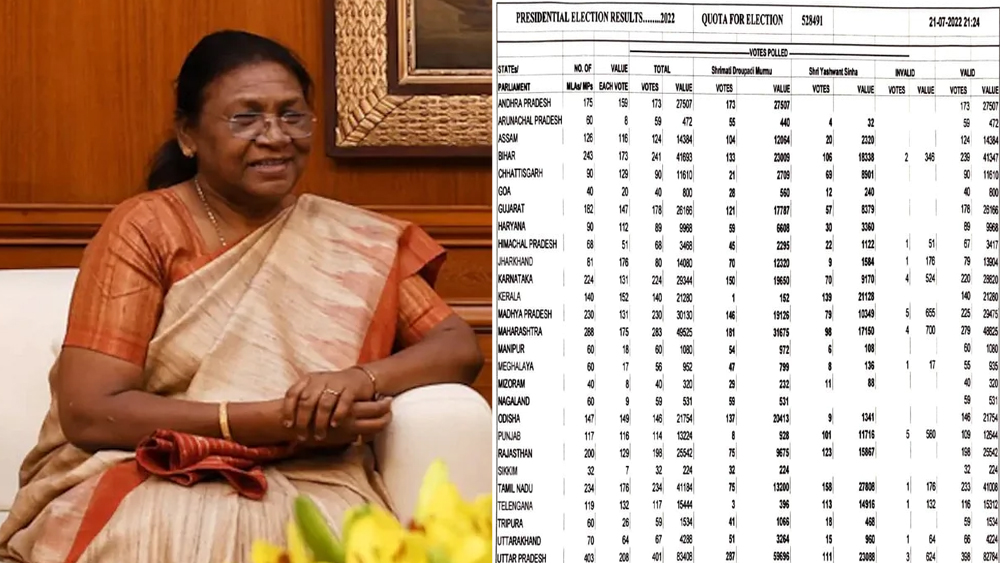 പ്രതിപക്ഷ സ്ഥാനാർത്ഥി യശ്വന്ത് സിൻഹയെ മൂന്ന് സംസ്ഥാനങ്ങൾ പൂർണമായും തഴഞ്ഞപ്പോൾ മുർമുവിന് മുഴുവൻ സംസ്ഥാനങ്ങളിൽ നിന്നും വോട്ടുകൾ ലഭിച്ചു. ഒരു വോട്ട് പോലും ലഭിക്കാൻ സാദ്ധ്യതയില്ലാതിരുന്ന കേരളത്തിൽ നിന്നും ഒരു വോട്ട് മുർമുവിന് ലഭിച്ചു. മുർമുവിന് ഏറ്റവും കുറവ് വോട്ട് ലഭിച്ച സംസ്ഥാനം ആണ് കേരളം.