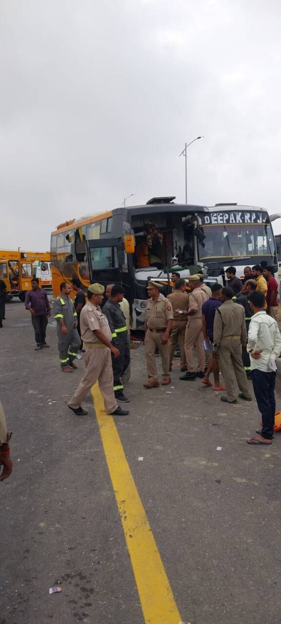 ലോണി കോത്ര പോലീസ് സ്റ്റേഷൻ പരിധിയിലുള്ള നാരായൺ പൂർ ഗ്രാമത്തിന് സമീപമാണ് അപകടം സംഭവിച്ച എക്സ്പ്രസ് വേ കടന്നുപോകുന്നത്. രണ്ട് ബസുകളും ബിഹാറിൽ നിന്ന് ഡൽഹിയിലേക്ക് പോകുന്നവയായിരുന്നു. ഒരു ബസ് പെട്ടെന്ന് നിർത്തിയപ്പോൾ പിന്നിൽ വരികയായിരുന്ന അടുത്ത ബസ് മുമ്പിലെ ബസിനെ ഇടിച്ചു.