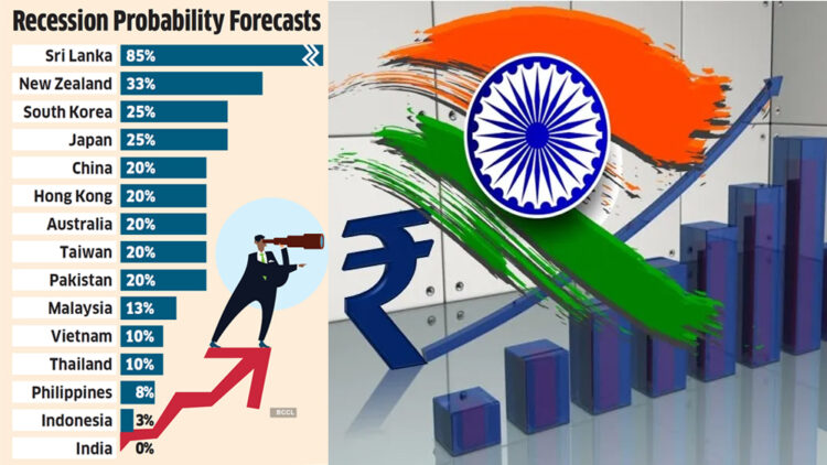 അയൽ രാജ്യങ്ങളായ ചൈനയും പാകിസ്താനും സാമ്പത്തിക മാന്ദ്യത്തിലേക്ക് കൂപ്പുകുത്താനുള്ള സാധ്യത 20 ശതമാനമാണ്. പക്ഷെ ഇന്ത്യയ്‌ക്ക് ഈ സാദ്ധ്യത പൂജ്യമാണ് റിപ്പോർട്ട് തയ്യാറാക്കിയ വിദഗ്ധർ കൽപ്പിക്കുന്നത്. ഇത് അഭിമാന നേട്ടമായിട്ടാണ് സാമ്പത്തിക വിദഗ്ധർ വിലയിരുത്തുന്നത്. പാകിസ്താനും ശ്രീലങ്കയും കടുത്ത സാമ്പത്തിക പ്രതിസന്ധിയിലൂടെ കടന്ന് പോകുന്ന സാഹചര്യത്തിൽ ഇന്ത്യയുടേയും ഭാവി അതായിരിക്കുമെന്ന് വ്യാജപ്രചാരണങ്ങൾ വ്യാപകമായിരുന്നു. ഇതിനുള്ള തക്ക മറുപടിയാണ് ബ്ലൂംബർഗിന്റെ ഈ സർവ്വേ റിപ്പോർട്ട്.