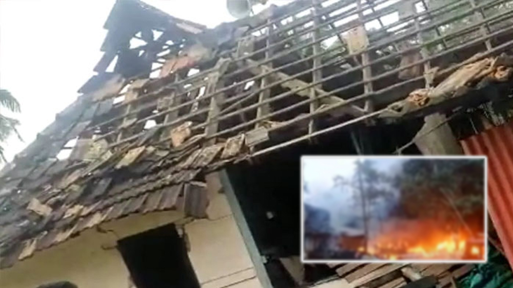 കുടുംബ ക്ഷേത്രമായ ഇവിടെ അടുത്ത ദിവസം നടക്കാനിരിക്കുന്ന സപ്താഹയജ്ഞത്തിന് വേണ്ടി സൂക്ഷിച്ച കതിനയ്ക്കാണ് തീപിടിച്ചത്.