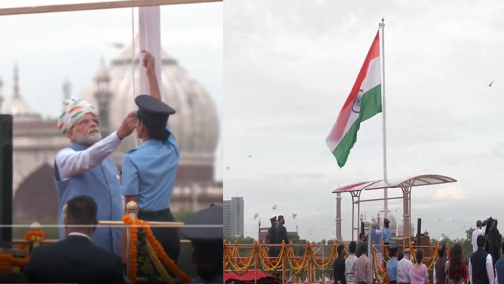 ചെങ്കോട്ടയിൽ ത്രിവർണ്ണ പതാക ഉയർത്തി പ്രധാനമന്ത്രി; ഭാരതീയർക്ക് സ്വാതന്ത്ര്യദിനാശംസകൾ നേർന്ന് നരേന്ദ്രമോദി