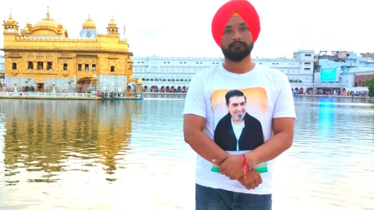 അമൃത്സർ:സിഖ് വിരുദ്ധ കലാപ കേസിലെ മുഖ്യപ്രതിയുടെ ചിത്രം ആലേഖനം ചെയ്ത ടീ ഷർട്ട് ധരിച്ച് സുവർണ്ണ ക്ഷേത്ര ദർശനം നടത്തിയ കോൺഗ്രസ് പ്രവർത്തകനെതിരെ പരാതി. കോൺഗ്രസ് പ്രവർത്തകനായ കരംജിത് സിംഗ് ഗില്ലിനെതിരെയാണ് ക്ഷേത്ര അധികൃതർ പരാതി നൽകിയത്.
