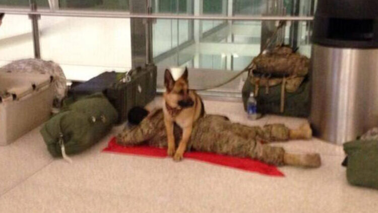നായകൾക്ക് മനുഷ്യരോടുളള സ്‌നേഹവും വിധേയത്വവും എക്കാലത്തും വാർത്തകളിൽ നിറഞ്ഞിട്ടുണ്ട്. അമേരിക്കൻ സൈനികന് കാവലായി നിൽക്കുന്ന സൈനികന്റെ പടമാണ് ഇപ്പോൾ ലോക ശ്രദ്ധ നേടിയിരിക്കുന്നത്. വിമാനത്താവളത്തിൽ ഉറങ്ങുന്ന സൈനികനെ സംരക്ഷിക്കാൻ സൈനിക നായ കാവൽ നിൽക്കുന്നതായി ചിത്രത്തിൽ കാണാം. അമേരിക്കൻ സൈന്യത്തിൽ നായ്‌ക്കളുടെ പങ്ക് വളരെ പ്രധാനമാണ്.