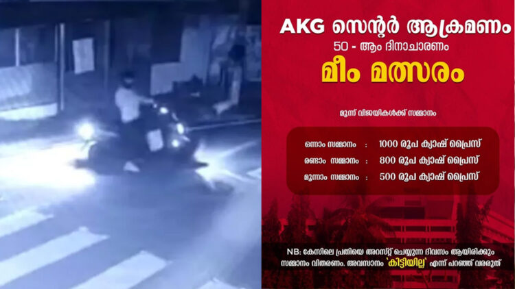 അതേസമയം എകെജി സെന്റർ ആക്രമണം നടന്നിട്ട് അമ്പത് ദിവസം പിന്നിടുന്ന ഇന്ന് ദിനാചരണം നടത്തുമെന്ന് പ്രഖ്യാപിച്ചിരിക്കുകയാണ് ഒരു ഫേസ്ബുക്ക് പേജ്. എകെജി സെന്റർ ആക്രമണത്തിന്റെ ഓരോ ദിവസത്തെയും അപ്ഡേറ്റ് അറിയാനുള്ള പേജ് എന്ന് പ്രഖ്യാപിച്ച് ആരംഭിച്ച ഡെയിലി അപ്ഡേറ്റ്സ് എകെജി സെന്റർ കേസ് എന്ന പേജാണ് ദിനാചരണവും മീം മത്സരവും പ്രഖ്യാപിച്ചിരിക്കുന്നത്.