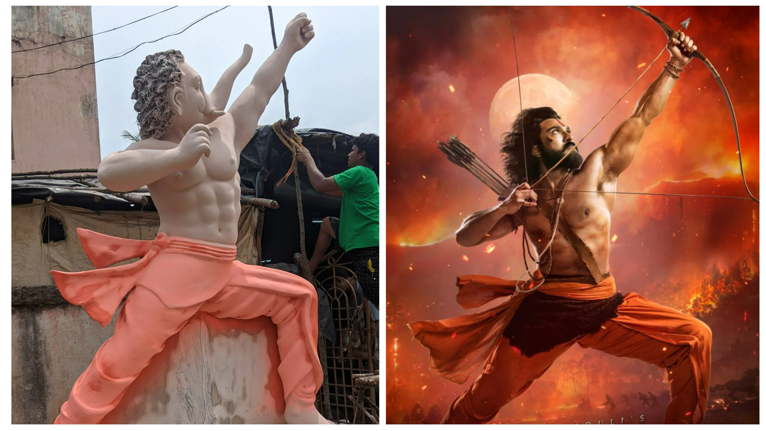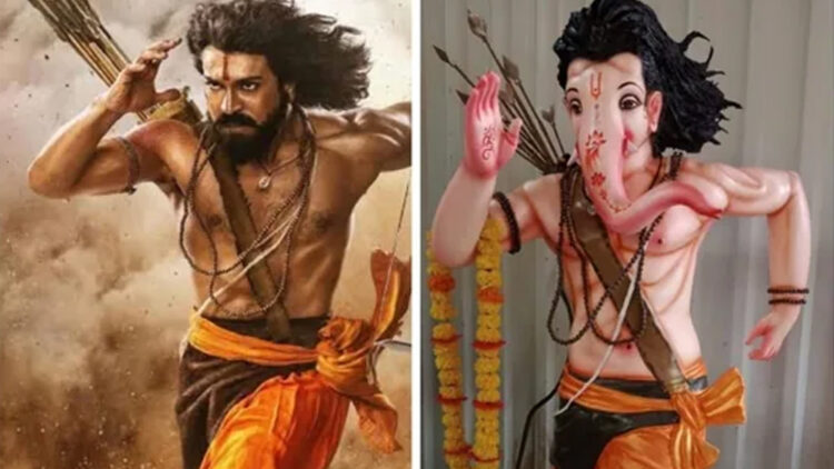 കൊമരം ഭീം, അല്ലൂരി സീതാരാമ രാജു എന്നിവരുടെ ജീവിതത്തിൽ നിന്നും പ്രചോദനം ഉൾക്കൊണ്ട് പകുതി വസ്തുതയും പകുതി ഫാൻ്റസിയും കലർത്തി നിർമ്മിച്ച ചിത്രമാണ് ആർ ആർ ആർ. ചിത്രത്തിന്റെ അവസാന ഭാഗത്ത് രാം ചരൺ അവതരിപ്പിക്കുന്ന കഥാപാത്രം ശ്രീരാമ വേഷത്തിന് സമാനമായ വേഷവിധാനങ്ങളുമായി സംഘട്ടന രംഗങ്ങളിൽ പ്രത്യക്ഷപ്പെടുന്നുണ്ട്. ഇതേ മാതൃകയിൽ ആവിഷ്കരിച്ചിരിക്കുന്ന ഗണേശ വിഗ്രഹങ്ങളാണ് ശ്രദ്ധേയമാകുന്നത്.