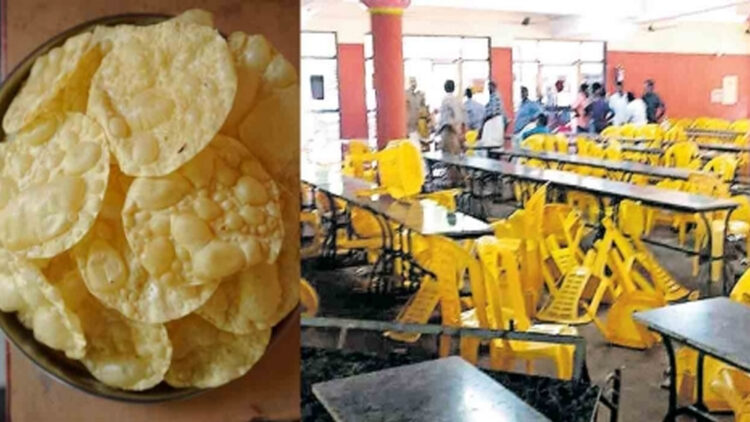 ആലപ്പുഴ: കല്യാണ സദ്യയ്ക്കിടെ പപ്പടത്തിന്റെ പേരിലുണ്ടായ പൊരിഞ്ഞ അടിയിൽ ലക്ഷങ്ങളുടെ നാശനഷ്ടം. ഒന്നര ലക്ഷം രൂപയുടെ നഷ്ടമാണ് ഓഡിറ്റോറിയം ഉടമ മോഹനന് ഉണ്ടായിരിക്കുന്നത്. ഇതിന് പുറമേ ആക്രമണത്തിൽ തലയ്ക്കുണ്ടായ പരിക്കിൽ 14 സ്റ്റിച്ചുണ്ട്.