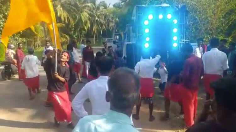 കഴിഞ്ഞ ദിവസമായിരുന്നു ചിറ്റൂർ അഞ്ചാം മൈലിൽ സിപിഎം ഗണേശോത്സവം ആഘോഷിച്ചത്. ആഘോഷത്തിന്റെ ഭാഗമായി നിമഞ്ജന ശോഭയാത്ര കടന്നു പോകുന്ന വഴിയിലെല്ലാം സിപിഎം പ്രവർത്തകർ കാവിക്കൊടികൾ സ്ഥാപിച്ചിരുന്നു. ഗണേശ ചിത്രങ്ങൾ ആലേഖനം ചെയ്ത കൊടികൾ ആയിരുന്നു കിലോ മീറ്ററുകളോളം പ്രവർത്തകർ സ്ഥാപിച്ചിരുന്നത്. വിപുലമായ ശോഭയാത്രയും പ്രവർത്തരുടെ നേതൃത്വത്തിൽ നടന്നു.