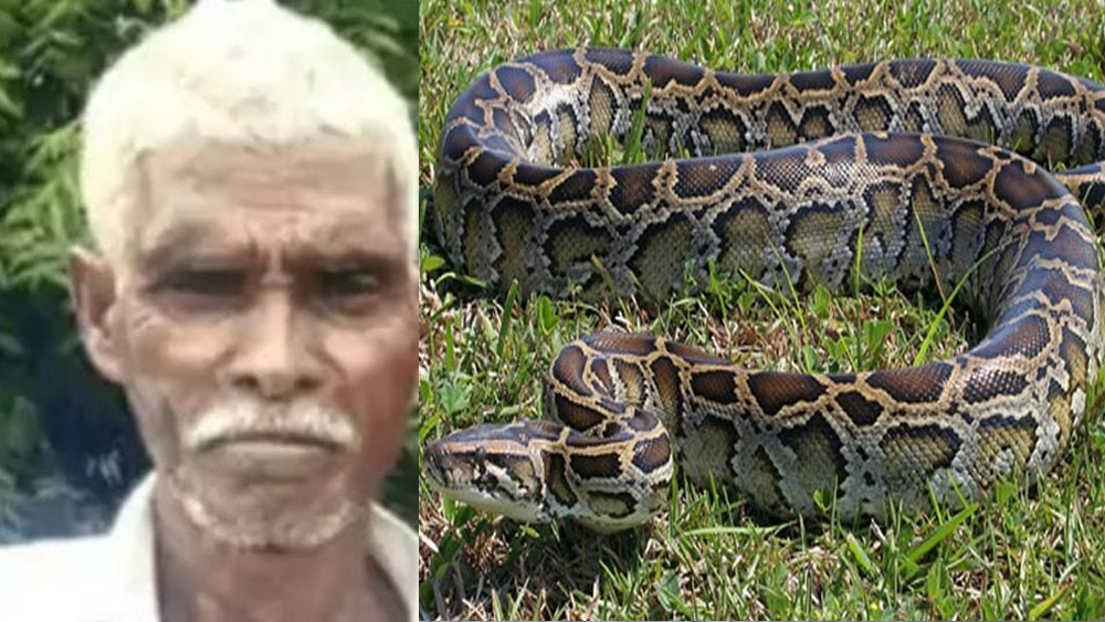 തമിഴ്നാട് കൃഷ്ണഗിരി ജില്ലയിലെ കാവേരിപട്ടണത്താണ് സംഭവം. കർഷകന്റെ വീട്ടിലെ കിണറ്റിൽ ഒരാഴ്ച മുൻപാണ് മലമ്പാമ്പ് വീണത്. അടുത്തിടെ കനത്ത മഴ പെയ്തതിനാൽ കിണറ്റിൽ വെള്ളം കൂടി. ഇതോടെ പാമ്പിനെ പുറത്തെടുക്കാൻ വീട്ടുകാർ നടരാജനെ സമീപിച്ചു. കഴിഞ്ഞ ദിവസം രാവിലെയാണ് കിണറ്റിൽ വീണ പാമ്പിനെ രക്ഷിക്കാൻ നടരാജൻ എത്തിയത്.