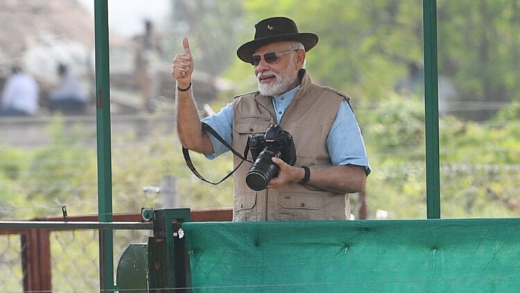 ഫോട്ടോഗ്രഫിയോട് ഏറെ പ്രിയമുള്ള മോദി കുർത്തയ്ക്ക് മുകളിൽ വൈൽഡ് ലൈഫ് ഫോട്ടോഗ്രാഫർമാർ ധരിക്കുന്ന ജാക്കറ്റും തൊപ്പിയും ധരിച്ചാണ് എത്തിയത്. ചീറ്റകളെ തുറന്നു വിട്ടതിനു ശേഷം മദ്ധ്യപ്രദേശ് മുഖ്യമന്ത്രി ശിവരാജ് സിംഗ് ചൗഹാനോടൊപ്പം നിന്നാണ് ഡി എസ് എൽ ആർ ക്യാമറയിൽ ചിത്രങ്ങൾ പകർത്തിയത്.