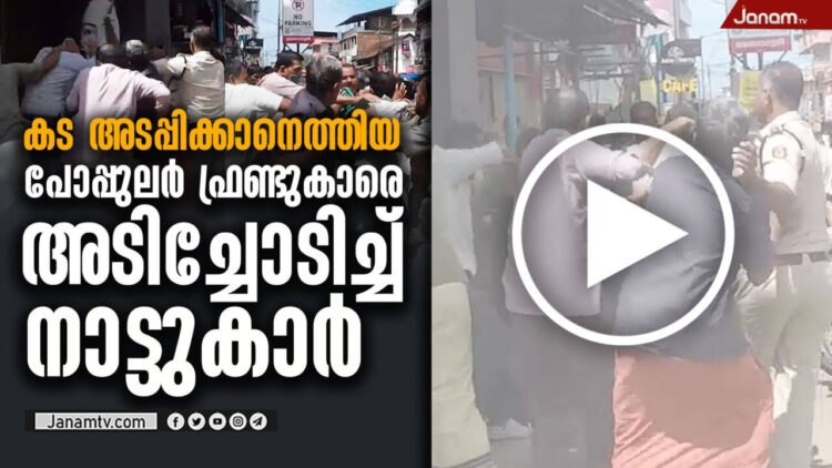 കണ്ണൂര്‍: പയ്യന്നൂരില്‍ കടകള്‍ അടപ്പിക്കാന്‍ ശ്രമിച്ച പോപ്പുലര്‍ ഫ്രണ്ടുകാരെ നാട്ടുകാര്‍ തല്ലിയോടിച്ചു. ഭീഷണിപ്പെടുത്തി കടകള്‍ അടപ്പിക്കാന്‍ ശ്രമിച്ച നാല് പോപ്പുലര്‍ ഫ്രണ്ട് പ്രവര്‍ത്തകരെയാണ് നാട്ടുകാര്‍ മര്‍ദ്ദിച്ചത്. തൃക്കരിപ്പൂര്‍ സ്വദേശി മുബഷീര്‍, ഒളവറ സ്വദേശി മുനീര്‍, രാമന്തളി സ്വദേശികളായ നര്‍ഷാദ്, ഷുഹൈബ് എന്നിവര്‍ക്കാണ് മര്‍ദ്ദനമേറ്റത്. നിലവില്‍ ഇവര്‍ പോലീസ് കസ്റ്റഡിയിലാണ്. വീഡിയോ…