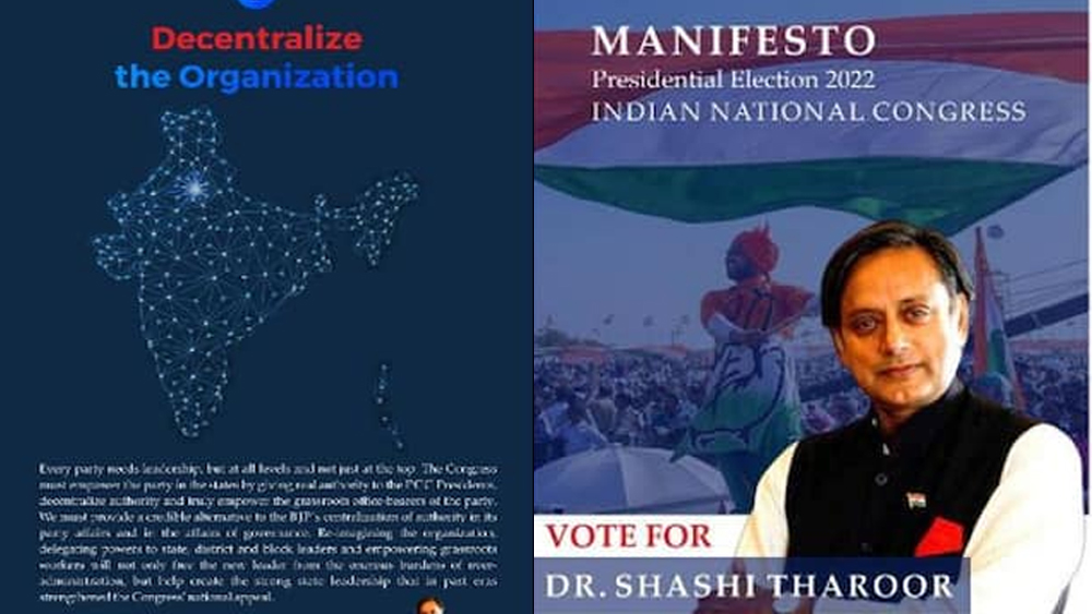 Congress presidential candidate Shashi Tharoor's manifesto for the election shows a distorted map of India, part of J&K omitted from Dr Tharoor’s manifesto.