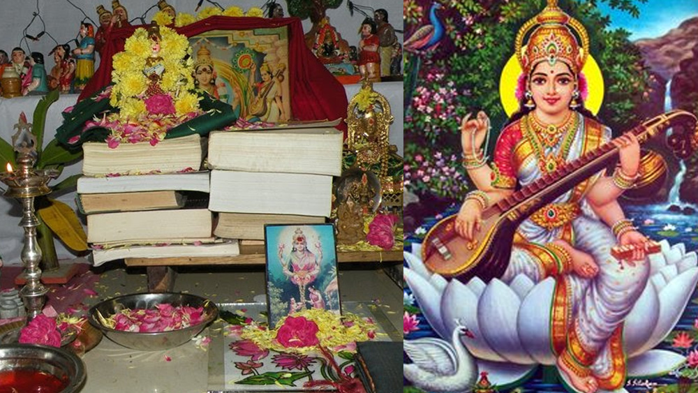 * വിദ്യയുടെ അധിപതിയാണ് സരസ്വതി ദേവി. സരസ്വതി പൂജ വളരെ പ്രാധാന്യം കൽപ്പിക്കുന്ന ഒന്നുതന്നെയാണ്. ദശമിയിൽ ‘സരസ്വതി നമസ്തുഭ്യം വരദേ കാമരൂപിണി വിദ്യാരംഭം കരിഷ്യാമി സിദ്ധിർഭവതു മേ സദാ’ എന്ന മന്ത്രം 108 തവണ ചൊല്ലണം.