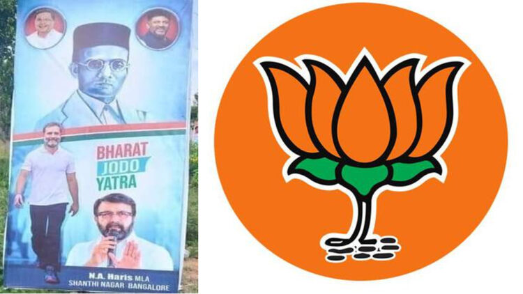 രാഹുൽ ഗാന്ധി നയിക്കുന്ന ഭാരത് ജോഡോ യാത്രയുടെ പ്രചാരണാർത്ഥം കർണാടകയിലെ മാണ്ഡ്യയിൽ സ്ഥാപിച്ച ഫ്ലക്സിലാണ് കോൺഗ്രസ് നേതാക്കൾക്കൊപ്പം സ്വാതന്ത്ര്യസമര സേനാനിയും ചരിത്രകാരനുമായ വിനായക് ദാമോദർ സവർക്കറുടെയും ചിത്രം ഉൾപ്പെടുത്തിയിരിക്കുന്നത്. രാഹുൽ ഗാന്ധിക്കും കർണാടക കോൺഗ്രസ് അദ്ധ്യക്ഷൻ ഡി കെ ശിവകുമാറിനും മുൻ മുഖ്യമന്ത്രി സിദ്ധരാമയ്യക്കും ഒപ്പമാണ് ഫ്ലക്സിൽ സവർക്കറുടെയും ചിത്രം ഉൾപ്പെടുത്തിയിരിക്കുന്നത്. കോൺഗ്രസ് ശാന്തി നഗർ എം എൽ എ അഹമ്മദ് ഹാരിസിന്റെ പേരും ഫ്ലക്സിലുണ്ട്.