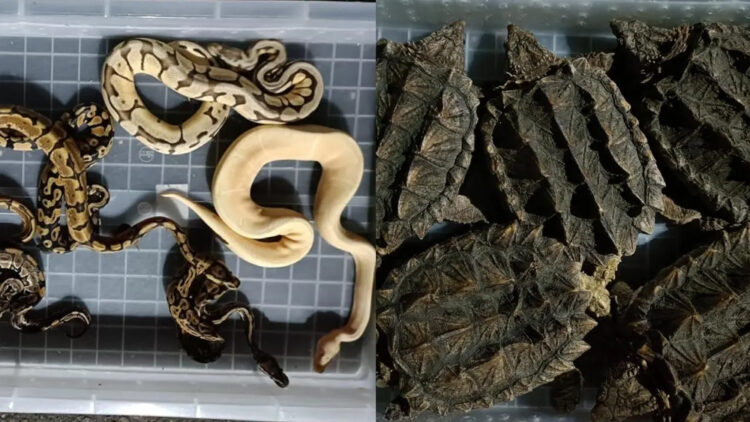 അക്വേറിയം മത്സ്യങ്ങളെ കൊണ്ടുവന്ന കാർട്ടൂണുകൾക്കിടയിലാണ് വന്യജീവികളെ കടത്തിയത്. ആകെ 30 കാർട്ടൂണുകൾ ഡിആർഐ പിടിച്ചെടുത്തു. ഇവയിൽ 13-ലും പെരുമ്പാമ്പുകളായിരുന്നു. മലേഷ്യയിൽ നിന്ന് ഇന്ത്യയിലേക്കുള്ള യാത്രക്കിടെയാണ് വിവിധ കാർട്ടൂണുകളിലായി ഉണ്ടായിരുന്ന 117 ജീവികൾ ചത്തതെന്ന് അധികൃതർ കരുതുന്നു. സംഭവത്തിൽ അന്വേഷണം പുരോഗമിക്കുകയാണ്.