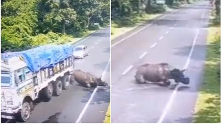 ഹൽദിബാരി ഇടനാഴിയിൽ 40 കിലോ മീറ്റർ വേഗതയാണ് വാഹനങ്ങളുടെ വേഗപരിധി. അപകടം സംഭവിക്കുമ്പോൾ 52 കിലോ മീറ്റർ വേഗതയിലായിരുന്നു ട്രക്ക് സഞ്ചരിച്ചിരുന്നത്. കാട്ടിൽ നിന്നും റോഡിലേക്ക് കയറിവന്ന കാണ്ടാമൃഗത്തെ ട്രക്ക് ഇടിച്ചതിന് പിന്നാലെ തെറിച്ചുവീണ മൃഗം അവിടെനിന്ന് രക്ഷപ്പെട്ട് പോകാൻ ബുദ്ധിമുട്ടുന്നത് ദൃശ്യങ്ങളിൽ വ്യക്തമായിരുന്നു. വീണിടത്ത് നിന്ന് എഴുന്നേൽക്കാൻ ശ്രമിക്കുമ്പോൾ വീണ്ടും അവിടെ തന്നെ വീഴുന്ന കാണ്ടാമൃഗത്തെയാണ് ദൃശ്യങ്ങളിൽ കാണാനാകുക.